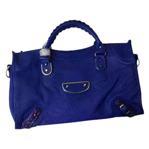 Bolso urbano iridiscente con borde metálico clásico de Balenciaga en azul