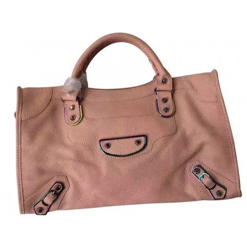 Bolso urbano iridiscente con borde metálico clásico de Balenciaga en rosa
