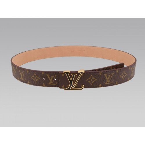 Cinturón Louis Vuitton con monograma inicial y hebilla negra y dorada