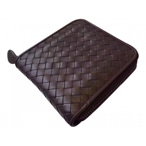 Cartera plegable con cremallera en chocolate Intrecciato de Bottega Veneta