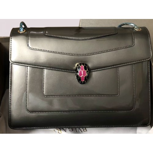 Bvlgari Flap Cover Serpenti Forever 28cm Piel de becerro metalizada gris