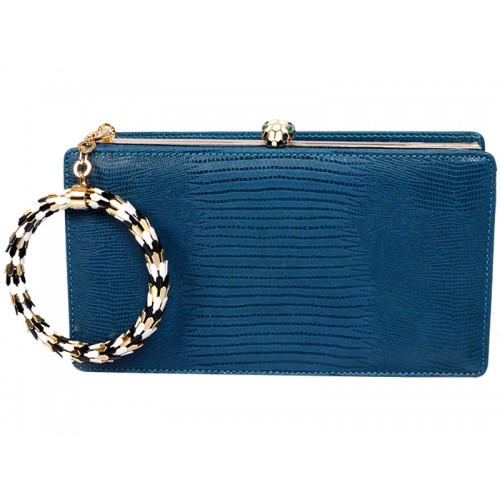 Pochette enmarcada Bvlgari Serpenti en piel de lagarto azul