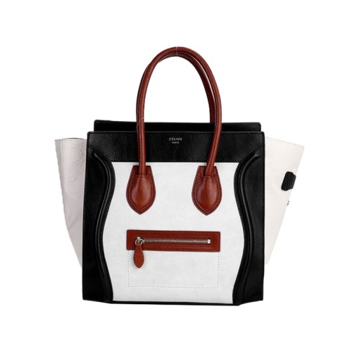 Bolso tote mediano Celine de piel de becerro negra y crema/ante crema