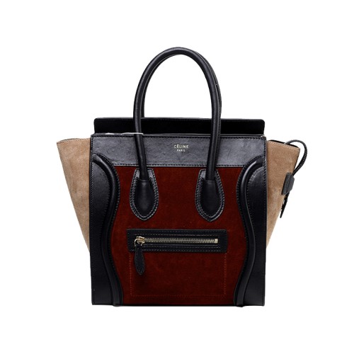 Bolso tote mediano Celine de piel de becerro negra/ante color vino
