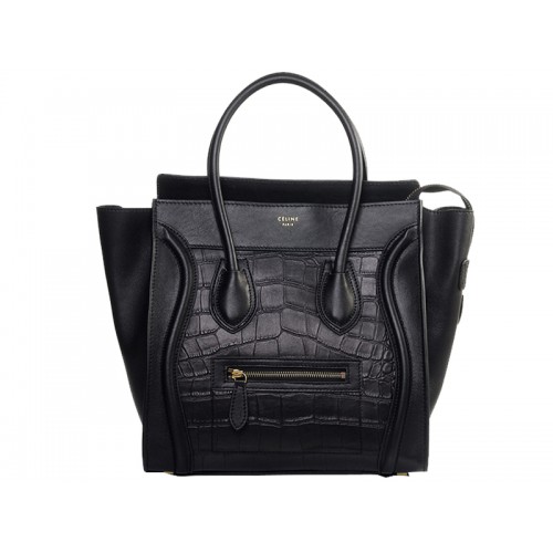 Bolso tote mediano Celine de piel de becerro negra con piel de cocodrilo