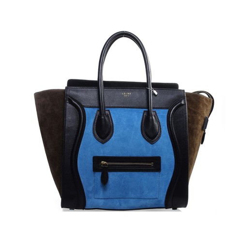 Bolso tote mediano Celine de piel de becerro negra y ante azul claro