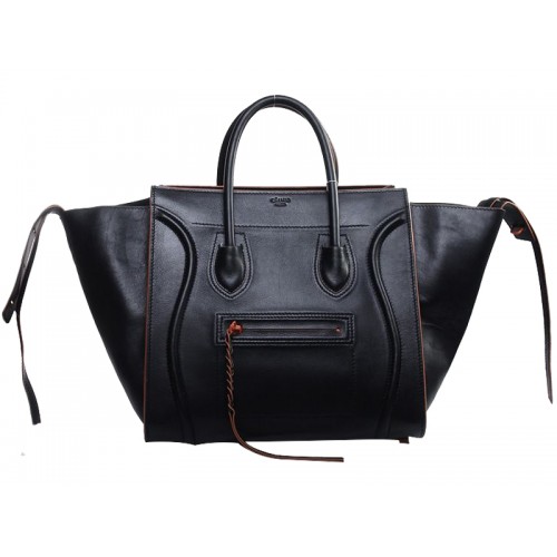Bolso tote cuadrado Phantom de Celine, negro con ribete naranja