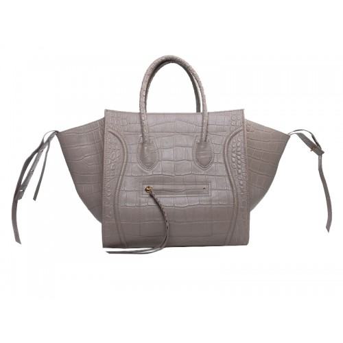 Bolso tote cuadrado Phantom de Celine Luggage en color caqui claro con efecto cocodrilo