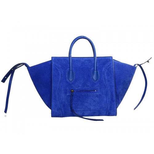 Bolso tote cuadrado Phantom de Celine Luggage en piel de ante azul brillante