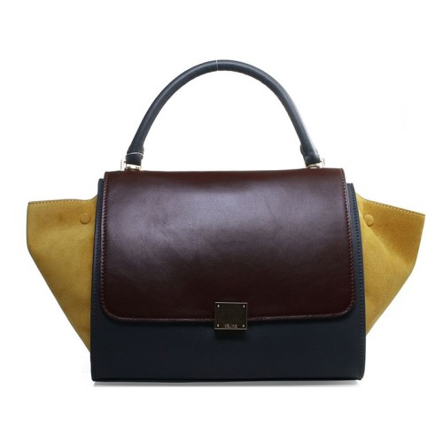 Bolso de hombro Celine Trapeze de piel de becerro multicolor, color vino/gris/ante amarillo