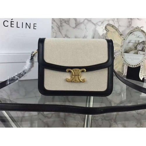 Bolso Celine Triomphe grande en tejido y piel de becerro natural negra