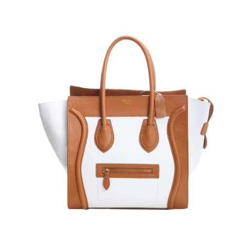 Bolso tote mediano Celine Luggage de piel de becerro color camello/blanco