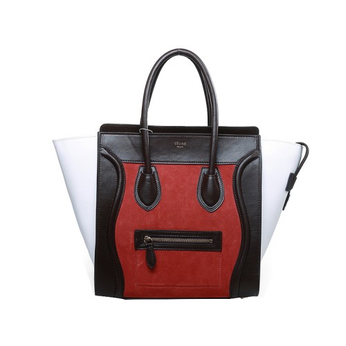 • Bolso tote mediano Celine de piel de becerro en color chocolate/blanco/ante naranja