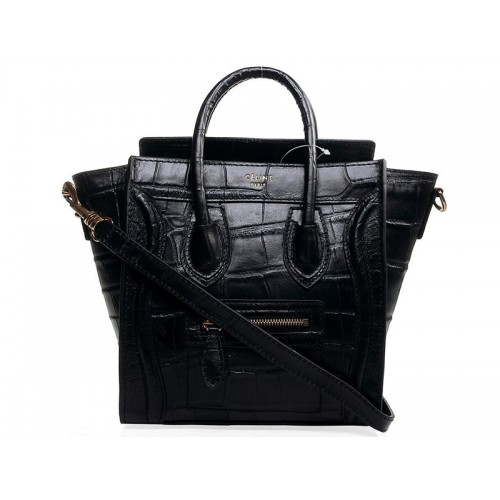 Mini bolso tote Celine Luggage en piel de cocodrilo negra