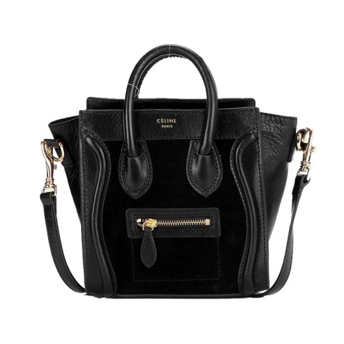 Mini bolso tote Celine de piel de becerro negra/gamuza negra