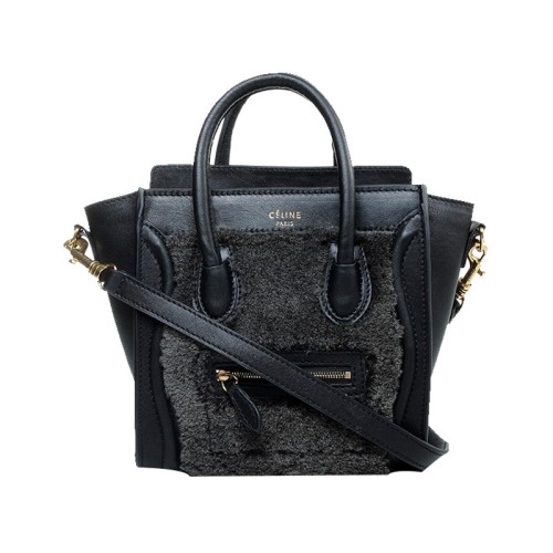 Mini bolso tote Celine de piel de becerro negra/lana negra