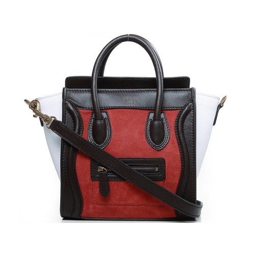 Mini bolso tote Celine de piel de becerro en color chocolate/ante, naranja y rojo