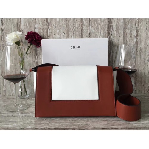 Bolso de hombro Celine de tamaño mediano en piel de Calskin burdeos y blanco