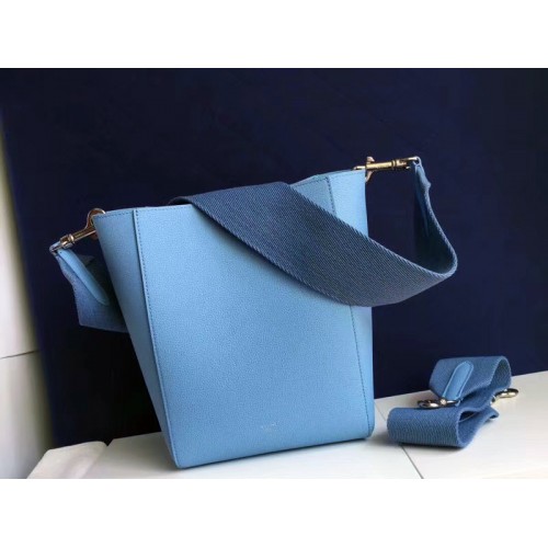 Bolso pequeño tipo cubo Celine Sangle en suave piel de becerro granulada azul