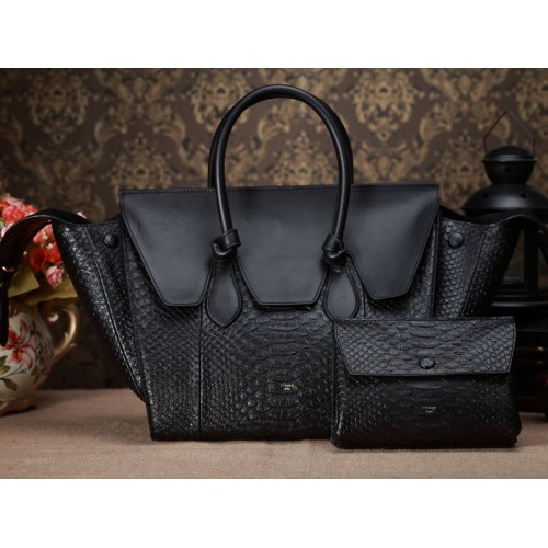 Bolso Celine Tie Nano con asa superior de piel de pitón negra