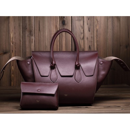 Bolso Celine Tie Nano con asa superior de piel color burdeos