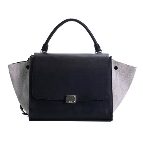 Bolso de hombro Celine Trapeze de piel de becerro en lona negra y crema