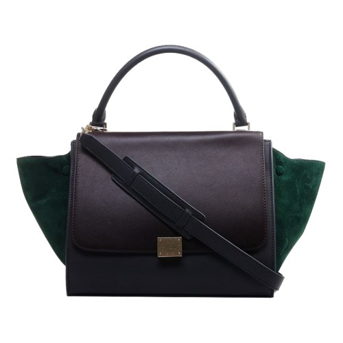 Bolso de hombro Celine Trapeze de piel de becerro marrón/ante verde