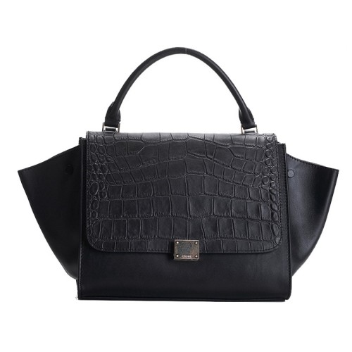 Bolso de hombro Celine Trapeze de piel de becerro color cocodrilo/negro