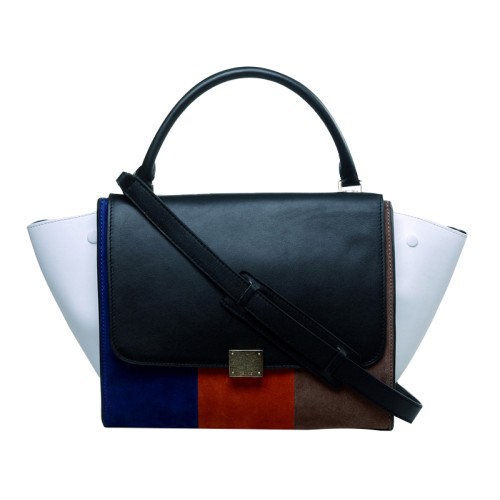 Bolso de hombro Celine Trapeze de piel de becerro multicolor en negro, azul, naranja, beige y blanco.