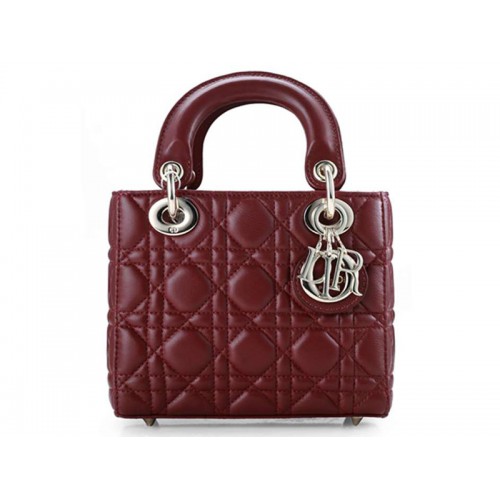 Bolso Dior Nano de piel con herrajes dorados color burdeos