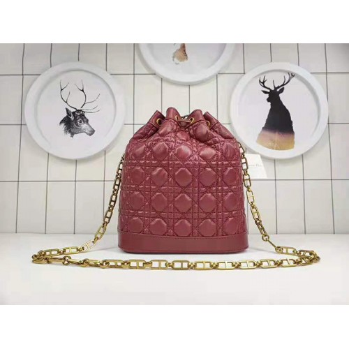 Bolsa tipo cubo Miss Dior en piel de cordero 'Cannage' flexible color burdeos.