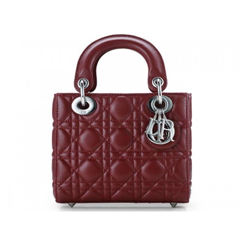 Bolso Dior Nano de piel con herrajes plateados color burdeos