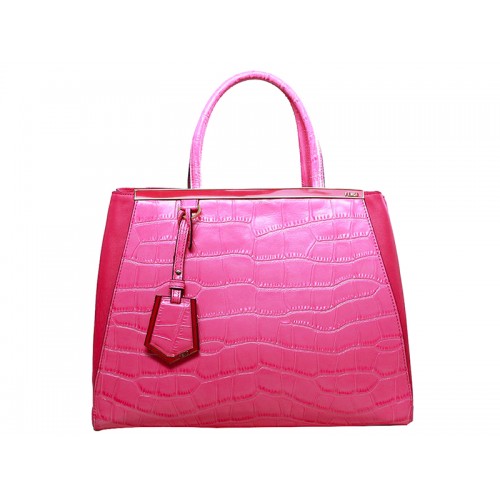 Bolso tote Fendi 2jours de piel de becerro en color cocodrilo rosa intenso