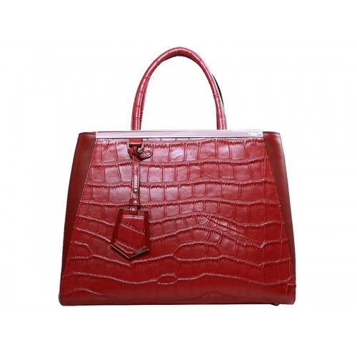 Bolso tote Fendi 2jours de piel de becerro en color rojo cocodrilo