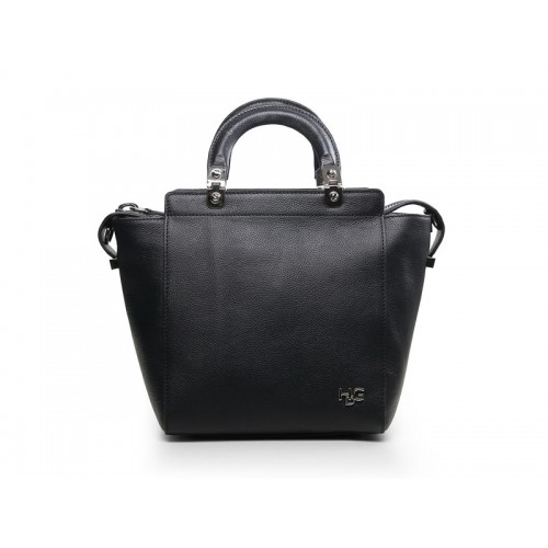 Cuero de grano suave con herrajes plateados pulidos