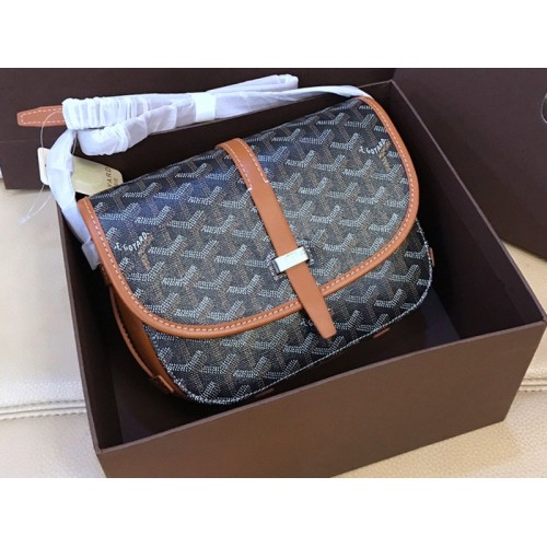 Bolso bandolera Goyardine Chevron de Goyard, negro con ribete de piel marrón