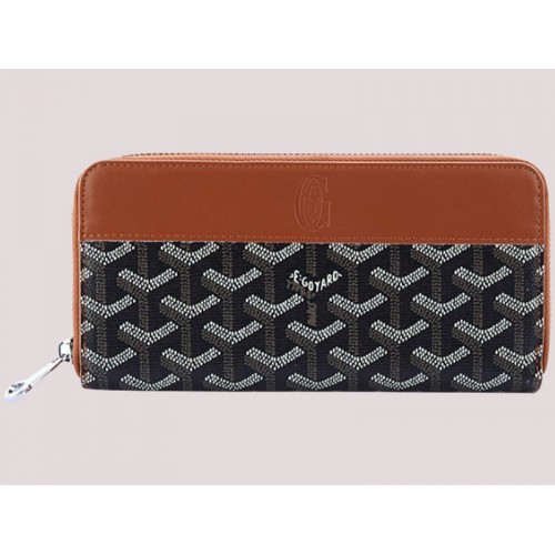 Cartera Goyard Goyardine Matignon negra con ribete de piel marrón