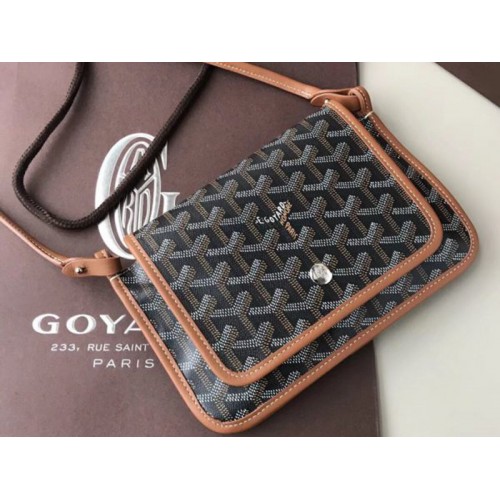 Cartera cruzada Goyardine Plumet de Goyard, negra con ribete de piel marrón