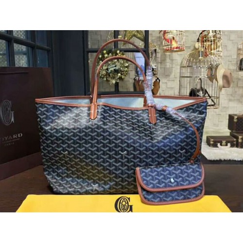 Goyard Goyardine Saint Louis Gm Negro con ribete de cuero marrón
