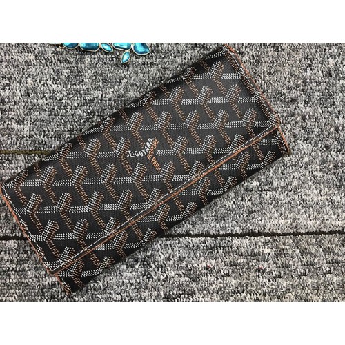 Cartera larga Goyard Varenne Chevron negra con ribete de cuero marrón