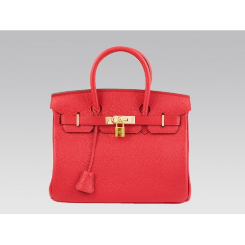 Hermes Birkin Clemence Rouge Vif de 30 cm con herrajes dorados