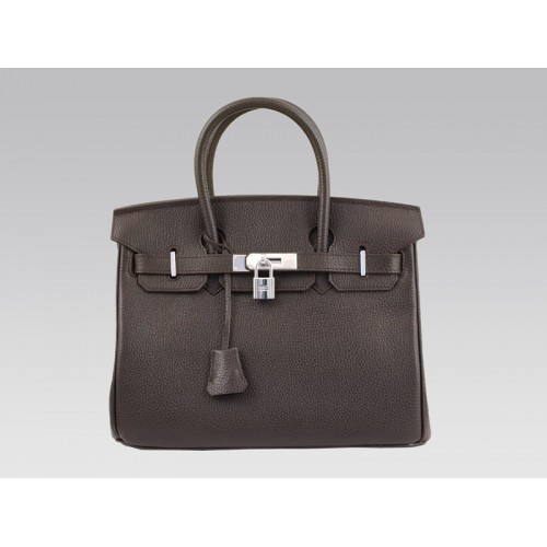 Bolso Hermes Birkin de 30 cm de piel Togo color chocolate con herrajes plateados