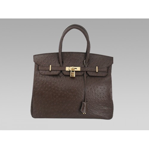 • Hermes Birkin 35 cm Avestruz Chocolate