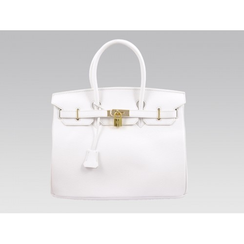 Hermes Birkin Togo Clemence de 35 cm, blanco con herrajes dorados