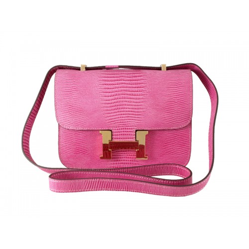 Bolso de hombro Hermes Constance 23 de piel de lagarto rosa