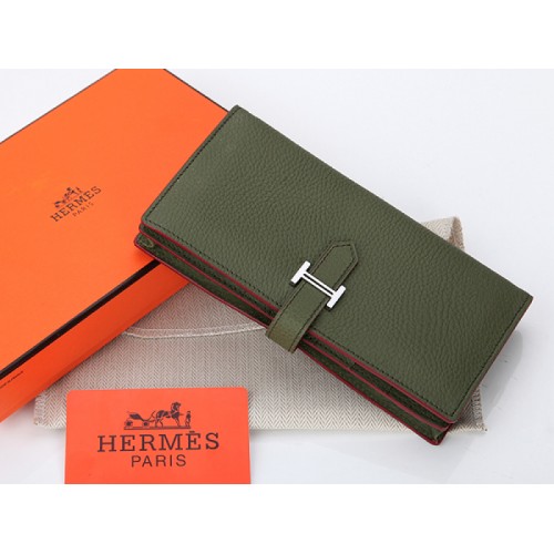 Cartera plegable Hermes Dogon Togo Original de piel de becerro Bearn Japonaise, color oliva