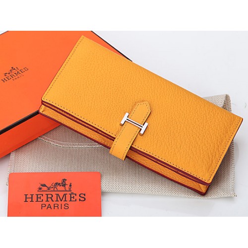 Cartera plegable Hermes Dogon Togo Original de piel de becerro Bearn Japonaise en amarillo