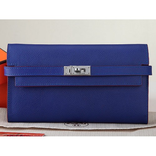 Cartera larga Hermes Epsom Original Kelly de piel de becerro azul eléctrico