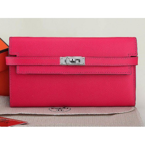 Cartera larga Hermes Epsom Original Kelly de piel de becerro en rosa intenso