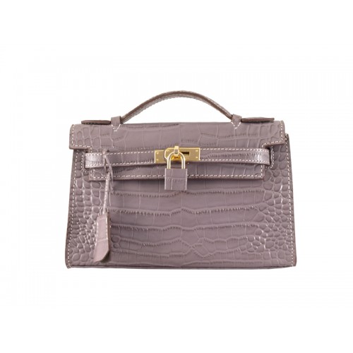 Hermes Matte Kelly Pochette Cocodrilo Malva